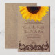 The background is a distressed vintage paper print with a slightly textured look. It has an ornate floral vine scroll print at the bottom of the invitation. The top of the invitation features a large bright yellow sunflower with beautiful yellow flower petals. These rustic sunflower wedding invitations are perfect for country weddings, barn weddings, farm weddings, cowboy weddings, rustic weddings, and anyone who is using sunflowers in their wedding bouquet or wedding reception decor.