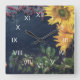 Rustic Country Sunflowers and Slate Roman Numerals Square Wall Clock