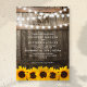 Capture your wedding day with a beautiful, timeless design! Our rustic-inspired décor evokes the perfect country-chic atmosphere with dark oak barrels, twinkle string lights, golden yellow sunflowers, and your personalized monogram. Make your special day truly unique and leave your guests with a lasting impression.