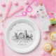 Rustic Country Western Barn Wedding Paper P;ates. These plates are embelished with the country western barn , Mr & Mrs.Name, and the wedding date. The paper plates feature a beautiful blend of country western vibes and fun times. Embrace the season's warmth and rustic theme with us on our special day.
