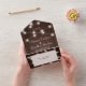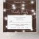 Elégant pays rustique été ou automne jardin extérieur mariage élégant tout en un triplé invitations mariage avec un modèle rsvp perforé sur bois de grange brun foncé avec cordes de lumières blanches scintillantes et un script de calligraphie classique chic.