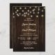 Personalized rustic country wedding invitations featuring barn wood and string lights. Perfect card design for inviting your guests to your rustic country, or barn wedding party. Matching items available.