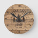 Rustic wood plank and forest pine trees clock personalized with your custom text (family name or vacation cabin or home rental property name) and year established. The sample is shown in 8-inch round size--choose 10.75 inch or square on the ordering page. ASSISTANCE: For help with design modification or personalization, colour change, resizing, transferring the design to another product or if you would like coordinating items, contact the designer BEFORE ORDERING via the Zazzle Chat MESSAGE tab below or email makeitaboutyoustore@gmail.com.