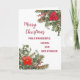 Merry Christmas for cousin and her husband card in rustic watercolor poinsettias and foliage.