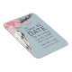 Announce your wedding engagement to family and friends with this boho styled save the date magnet. This rustic themed design template features a hand drawn hand painted cow skull wearing a blush pink floral watercolor rose headdress on a background of white and grey weathered wood. The card reads in charcoal grey script "Change the Date, for our wedding" with your wedding date and names to personalize. The back of the postcard has more of your wedding details to customize as well. Designed by artist Susan Coffey.