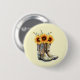 Button with a cute illustration featuring cowboy boots filled with sunflowers. Original image painted with watercolors.
