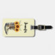A luggage tag with a cute illustration featuring cowboy boots filled with sunflowers. Original image painted with watercolors.