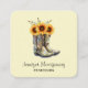 Rustic Cowboy Boots with Sunflowers Square Business Card