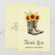 Rustic Cowboy Boots with Sunflowers Thank You Card
