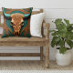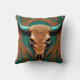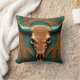 Rustic Cowboy Teal Orange Southwestern Bull Skull Throw Pillow