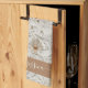 Rustic cream tooled leather script name kitchen towel. Personalize with your name.