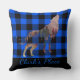 Rustic Custom Blue Buffalo Plaid Wolf Wilderness Throw Pillow