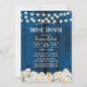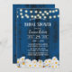 Rustic Daisy Flowers String Lights Navy Barn Wood Bridal Shower Invitations.