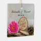 Show your appreciation and gratitude to your bridal party and wedding attendants with the charming Rustic Pink Daisy Woodland Wedding Bridesmaid Thank You Round Ornament. Customize it with the personal names of the bride and groom and marriage ceremony date. This woodsy chic custom woods or forest inspo bridesmaid ornament features a quaint nature photograph of a pink gerber daisy flower blossom, wood slices with the word LOVE on it, brown pine cone and white bridal veil with a burlap and white satin background. Perfect for a casual yet classy natural outdoor woodland wedding theme.