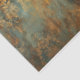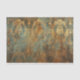 This is an ornate, decorative pattern in shades of gold, turquoise, and rust. The design features intricate, symmetrical damask or arabesque motifs that resemble stylized acanthus leaves, scrolls, and floral elements arranged in vertical columns. The patterns have a distressed, weathered appearance with faded and worn areas, revealing turquoise and rust underneath the gold top layer. This aged patina effect gives the design an antique or vintage feel.