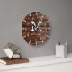 Rustic Dark Brown Barn Wood Family Name Monogram Large Clock