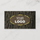 Make a lasting impression with this modern and elegant business card design featuring a rustic tree bark with a dark brown natural wood grain and a oval shimmery gold border.