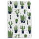 A gift bag with a rustic western flavour. Designed with a bunch of cute green cactuses in a repeating pattern. Specifically, green coloured prickly cactus, in all kinds of shapes and sizes, each sitting in its own dark blue flower pot. Little decorative triangles in between them. Whimsical fun illustration.
