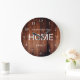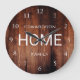 Rustic dark wood pattern with HOME script and family name, wall clock.