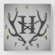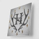 Rustic Deer Antlers Grey Faux Burlap Texture Square Wall Clock