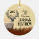 Celebrate baby's first Christmas! Featuring buck deer with lights intertwined in his antlers. Customize with baby's name and year of birth.