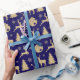 Here's an elegant Holiday wrapping paper that uses faux gold glitter silhouette images on a deep blue background. Images in the repeated pattern include a leaping reindeer, a standing deer, a tree bulb, crossed arrows, a pine tree, and various snowflakes falling down. Beautiful and festive! *Please note - the images are printed, and the paper contains no actual glitter. Design credit for the images to DigitalCloud.