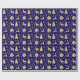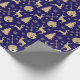 Rustic Deer Gold Christmas Pattern on Blue Wrapping Paper