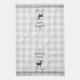 Customize your kitchen with this cute personalized towel featuring your family name or house name and year established in rich charcoal grey lettering accented with a deer illustration on a tonal plaid background.