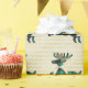 Rustic, plaid teal deer pattern with boho, green pine cones and pine needles in antler with a gold ribbon around neck. Gold chevron background.