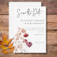 Capture the essence of the autumnal season with our enchanting fall wedding save the date card. Adorned with a delicate wreath of watercolor fall foliage and leaves in rich rust, burgundy, brown, and tan hues against a pristine white background, this invitation exudes warmth and charm. Each brushstroke celebrates the beauty of nature's transition, creating a stunning centerpiece that sets the tone for your fall wedding celebration. Whether you're exchanging vows beneath a canopy of colourful leaves or celebrating indoors with cozy candlelight, our invitation promises to evoke the spirit of the season in every detail. Embrace the magic of fall and invite your loved ones to share in your special day with an invitation that captures the heart and soul of autumn. Choose our square fall wedding invitation and embark on a journey to a day filled with love, laughter, and unforgettable memories amidst the beauty of nature's changing palette. Created by Simply Farmhouse Press.