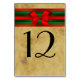Rustic Distressed, Red & Green Ribbon Christmas Table Number