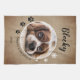 Rustic Dog Pet Photo Merry Christmas kitchen towel. The background is rustic beige with white snowflakes and black paw prints. Personalize the towel with your dog`s photo, name and year. You can use it for any pet. A lovely holiday keepsake for a dog owner.