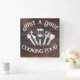 Featuring a distressed white graphic of grilling utensils on a wood-textured background, this clock is a perfect blend of style and wit.