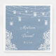 These beautiful dusty blue napkins with lace accents and string lights with mason jars are perfect for your garden, outdoor, formal, vintage, rustic or romantic wedding. It's soft flowy design is modern yet traditional. They would be fabulous for your engagement party, rehearsal dinner, wedding reception or wedding celebration. Select Personalize this template to make them uniquely your own. In seconds you will see your stunning rustic yet modern napkins.