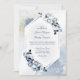 An elegant rustic geometric dusty blue watercolor floral wedding invitation. Featuring a unique design not to be found elsewhere which highlights a modern rustic charm.