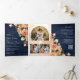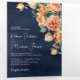 Rustic Earthy Peach Floral QR Code Navy Wedding Tri-Fold Invitation