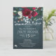 Elegant chic winter housewarming party stylish invitation template on a dark midnight navy blue chalkboard featuring a beautiful red burgundy and white peony roses bouquet with dark green foliage, strings of white twinkle lights, and a handwritten calligraphy script. ++++++++++++++ Easy to personalize with your details! +++++++++++++++ The invitation is suitable for elegant winter rustic country / farmhouse / cottage / Christmas new home celebration parties.