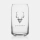 Rustic elegant personalized black and white plaid deer beer can glass.