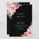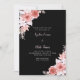 Rustic Elegant Pink Roses Fall Black Wedding Invitation
