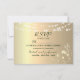 Embrace the perfect blend of elegance and rustic charm with our emerald green and gold RSVP card. Adorned with enchanting string lights, vintage boho floral lace, and modern calligraphy script, this card beautifully combines country sophistication with a touch of vintage romance for your special day.