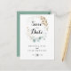 This rustic eucalyptus gold calligraphy save the date postcard is perfect for a floral wedding. This artistic design features hand-drawn gold floral an watercolor eucalyptus green foliage, beautifully arranged in an elegant geometric frame.