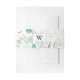 This rustic eucalyptus gold monogram wedding invitation belly band is perfect for a simple wedding. This artistic design features hand-drawn gold floral and watercolor eucalyptus green foliage, inspiring natural beauty.