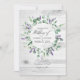 Watercolor leaf green silver dollar lavender rustic country barn wedding invitation with elegant typography designed to be quickly and easily customized to your event specifics. Ideal for any given theme or garden wedding. The QR code on the reverse directs to your wedding site where people can learn more and rsvp.