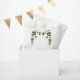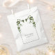 This design features rustic eucalyptus leaves. The eucalyptus greenery is complimented by an elegant black lined border. The dusty green tones of the eucalyptus leaf create a rustic country woodland garden feel. Elegant wedding favour bag design with modern elements. Matching wedding invitations and other stationery items are also available.