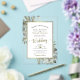 Invite your friends and family to celebrate your wedding with these gorgeous acrylic invitations. The design features hand painted watercolor eucalyptus and pine sprigs in muted shades of gold, sage, and grey, with a faux foil golden frame and elegant script lettering with flourishes or swashes on the ends of the letters. Available in both clear and frosted acrylic, these beautiful invites are sure to make a lasting impression.
