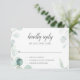Invite your guests to respond with grace and style with our beautifully designed Wedding RSVP Card. At the pinnacle of this elegant card, the word "Kindly" is artfully inscribed in a modern script, symbolizing the gentle nature of your request. This is harmoniously paired with a delicate watercolor eucalyptus motif, weaving in a touch of natural serenity and understated sophistication. The design perfectly captures the essence of a refined, nature-inspired wedding. This RSVP card is more than a mere formality; it's a tasteful expression of your wedding's theme, seamlessly blending the charm of modern calligraphy with the tranquil beauty of the eucalyptus, ensuring your guests feel a part of your special day from the very moment they reply.