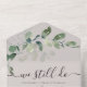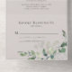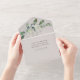 This vow renewal invitation with its watercolor eucalyptus leaves can be personalized with details of the event.