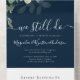 This vow renewal invitation with its watercolor eucalyptus leaves can be personalized with details of the event.