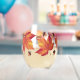 Glass wine cups with a beautiful rustic red fall leaves and brown acorns pattern. The design features a vibrant autumn hues colour palette sure to wow your thanksgiving guests!