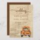 This invitation features a rustic design with a beautiful truck full of fall florals. The invitation is made of top quality cardstock and comes with a matching envelope. It is sure to make a lasting impression on your guests. The couple's monogram initials are on the back.
